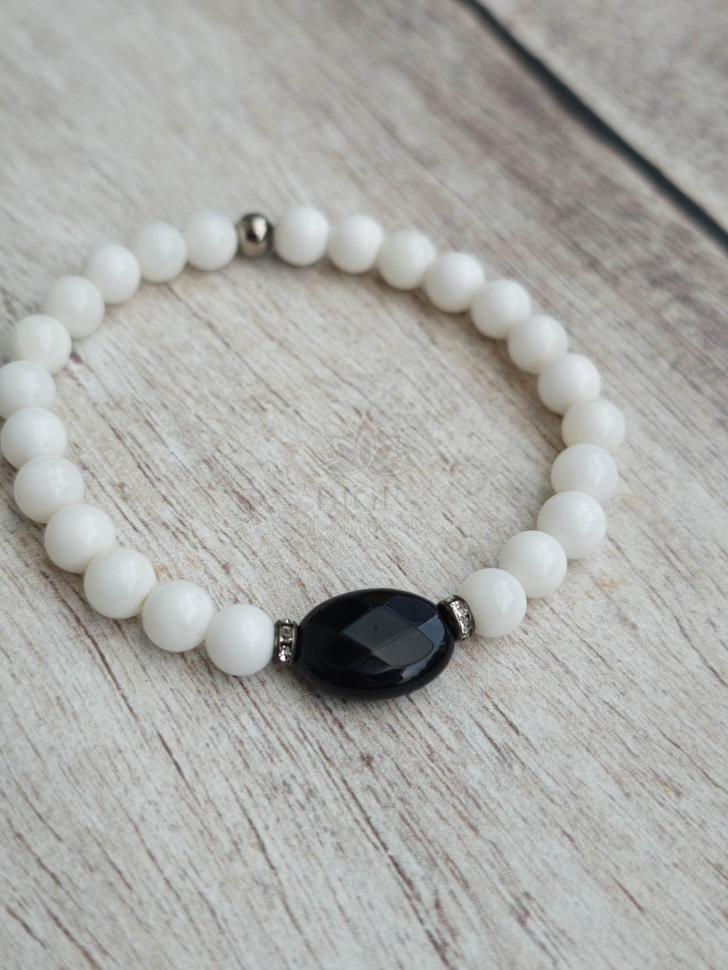 Ónix és kagyló gyöngyökből készült gumis karkötő